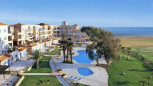 Этот проект в Пафосе включает в себя 6 блоков, которые выигрышно размещены среди просторных ландшафтных садов, что обеспечивает беспрепятственный вид на побережье. В составе комплекса есть 2 блока одноэтажных вилл с двумя комнатами, 2 блока, включающих как одно-, так и двухэтажные виллы смешанного типа с двумя комнатами, апартаменты с одной и двумя комнатами, а также мезонеты с двумя или тремя комнатами, а также 2 блока, которые состоят из частично одно-, двух- и трехэтажных вилл, апартаментов и мезонетов с двумя комнатами.